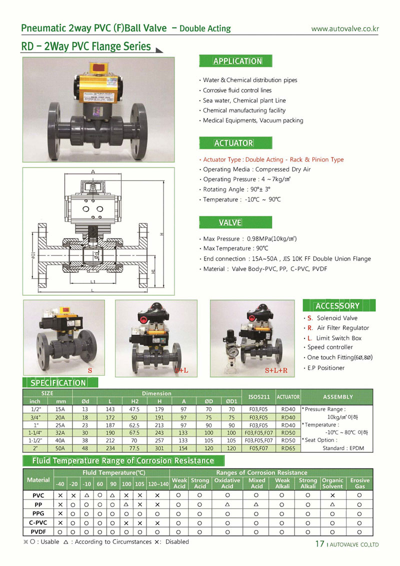 RD-PVC-F / 2Way PVC Double Acting Flange Ball Valve