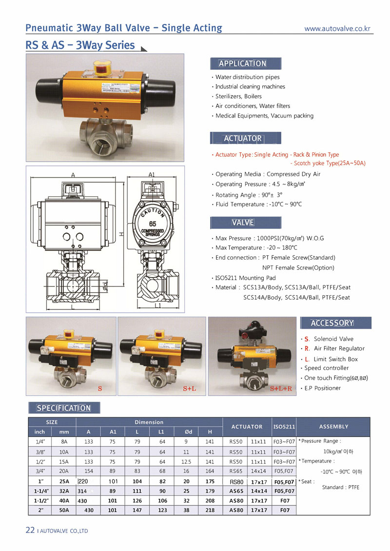 RS&AS-3WAY / 3Way Single Acting Ball Valve