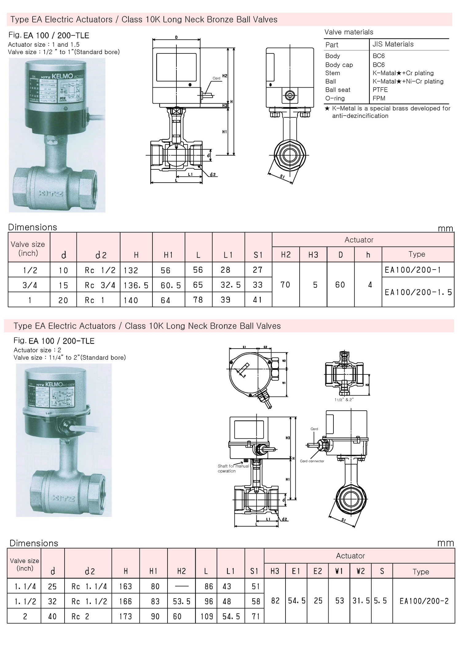 EA200-TLE, EA100-TLE KITZ 2PC Long Neck Bronze Ball Valve