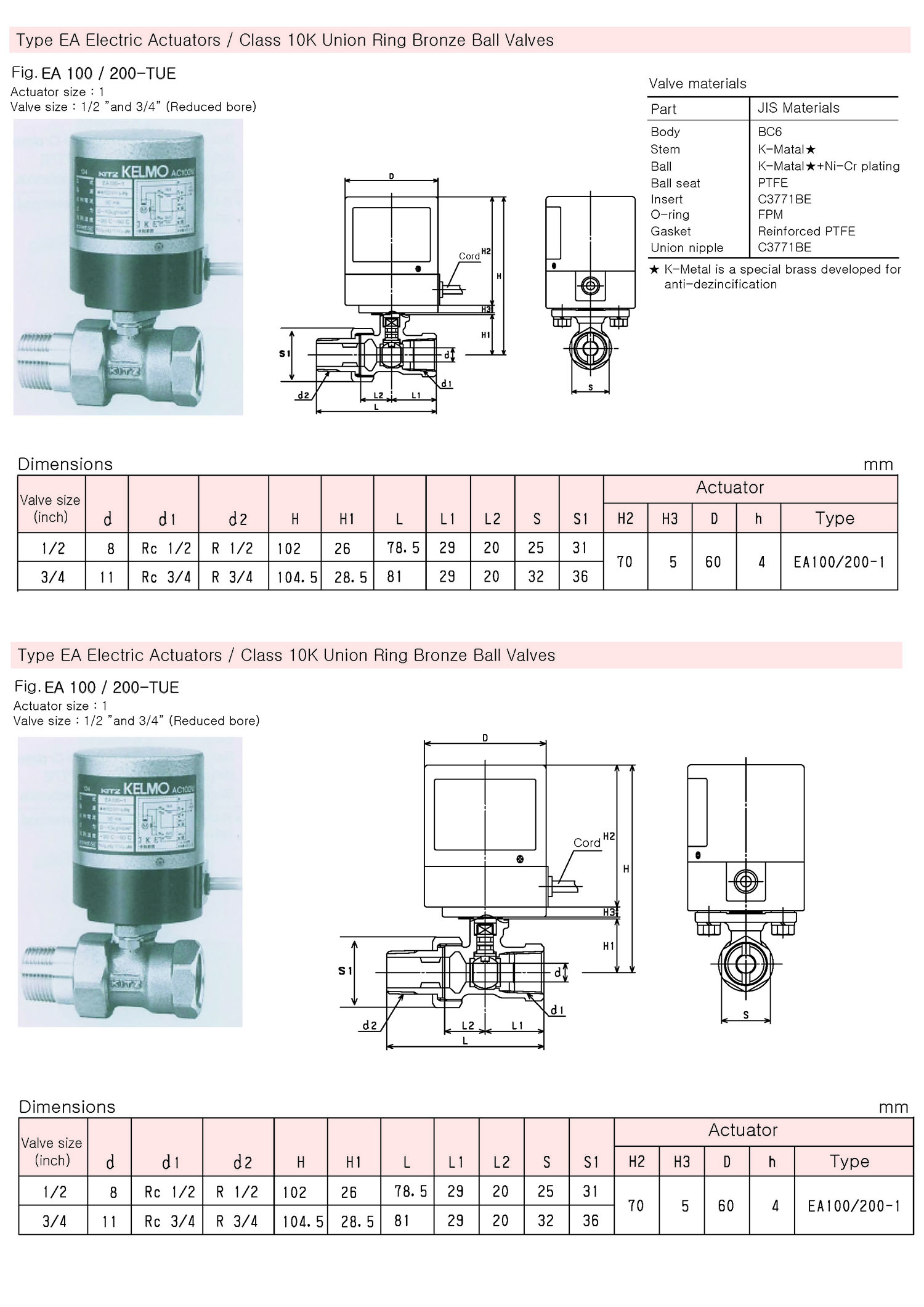 EA200-TUE, EA100-TUE KITZ Union Bronze Ball Valve