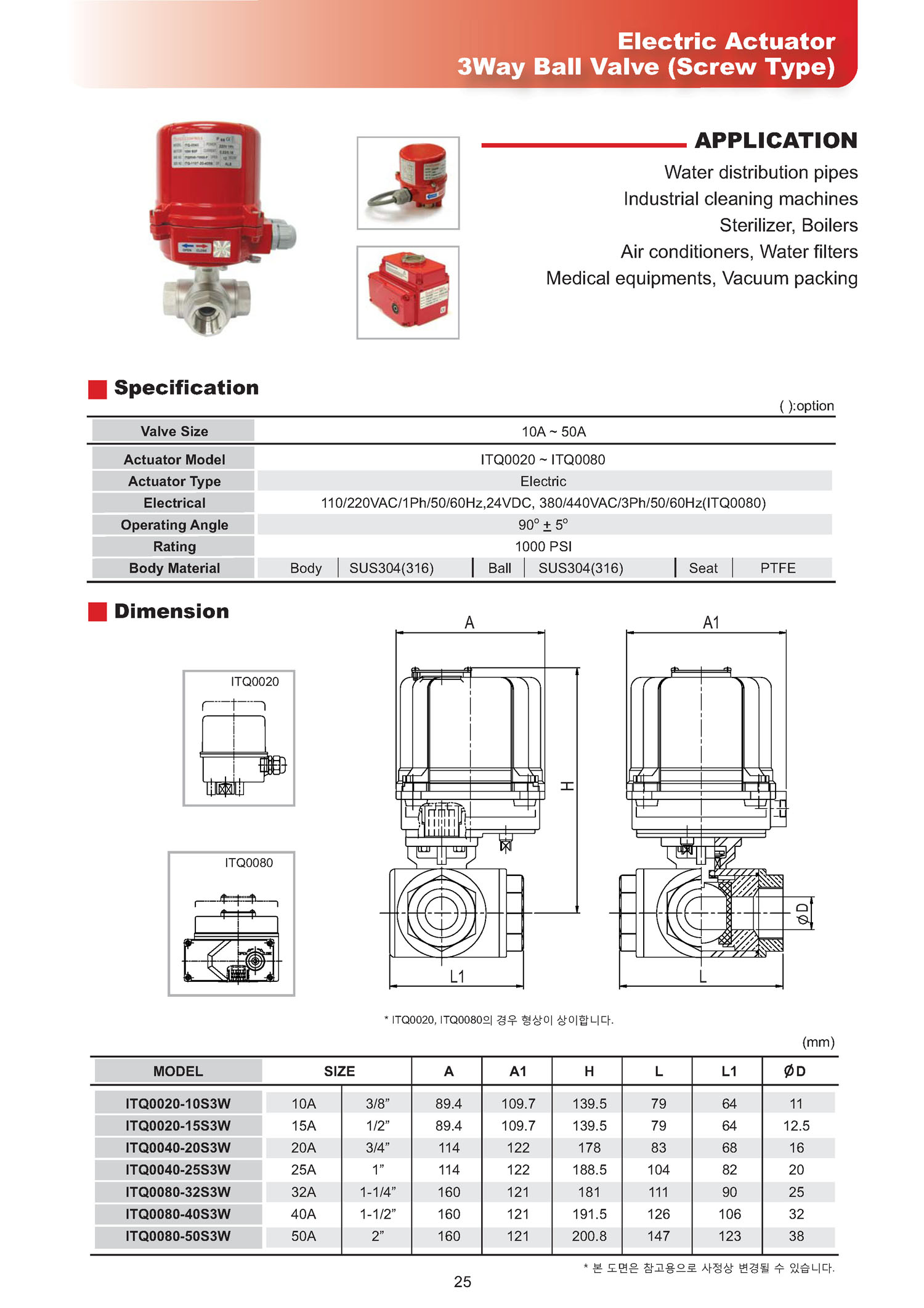 ITQ-3WS, Àüµ¿ 3¹æ ³ª»ç½Ä º¼¹ëºê(Electric 3way Screw Ball Valve)