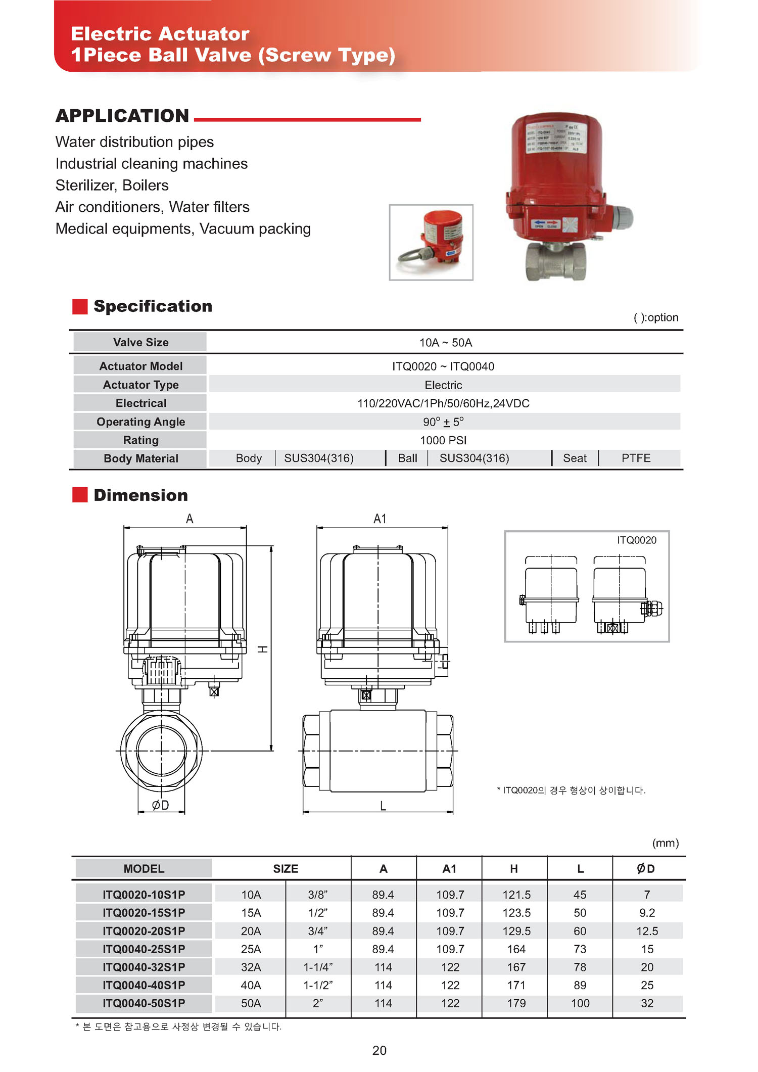 ITQ-S1, Àüµ¿ 1PC º¼¹ëºê(Electric 1Piece 2Way Ball Valve)