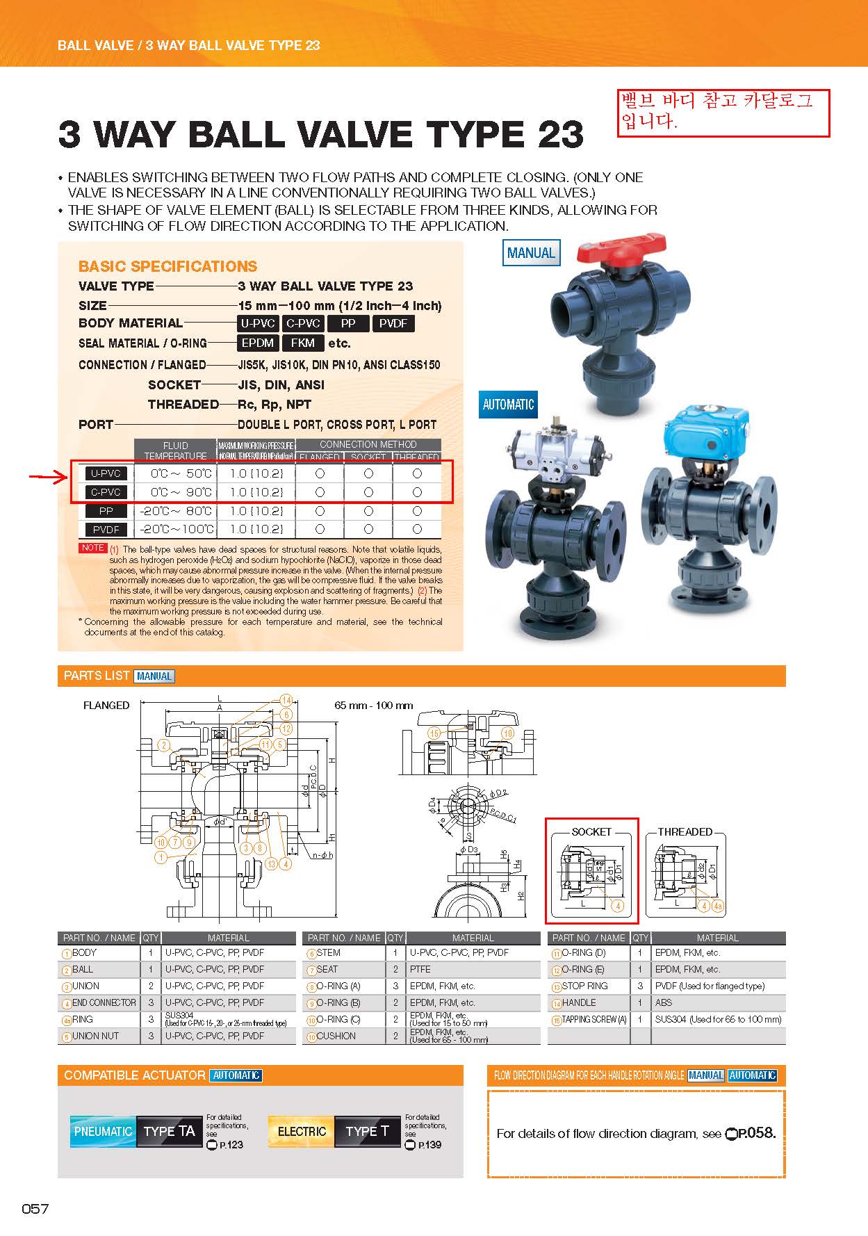 PVC 3WAY BALL VALVE Ä«´Ù·Î±× ÀÔ´Ï´Ù.
