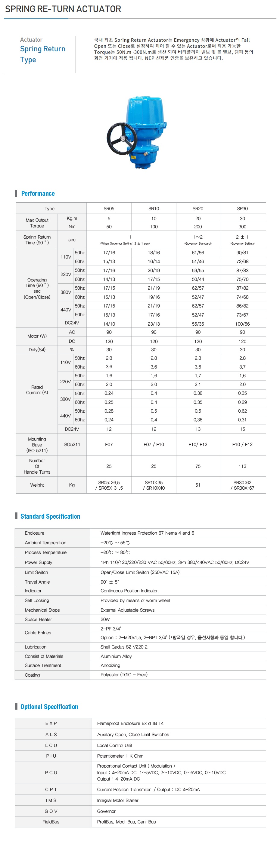 SR SPRING RE-TURN ACTUATOR