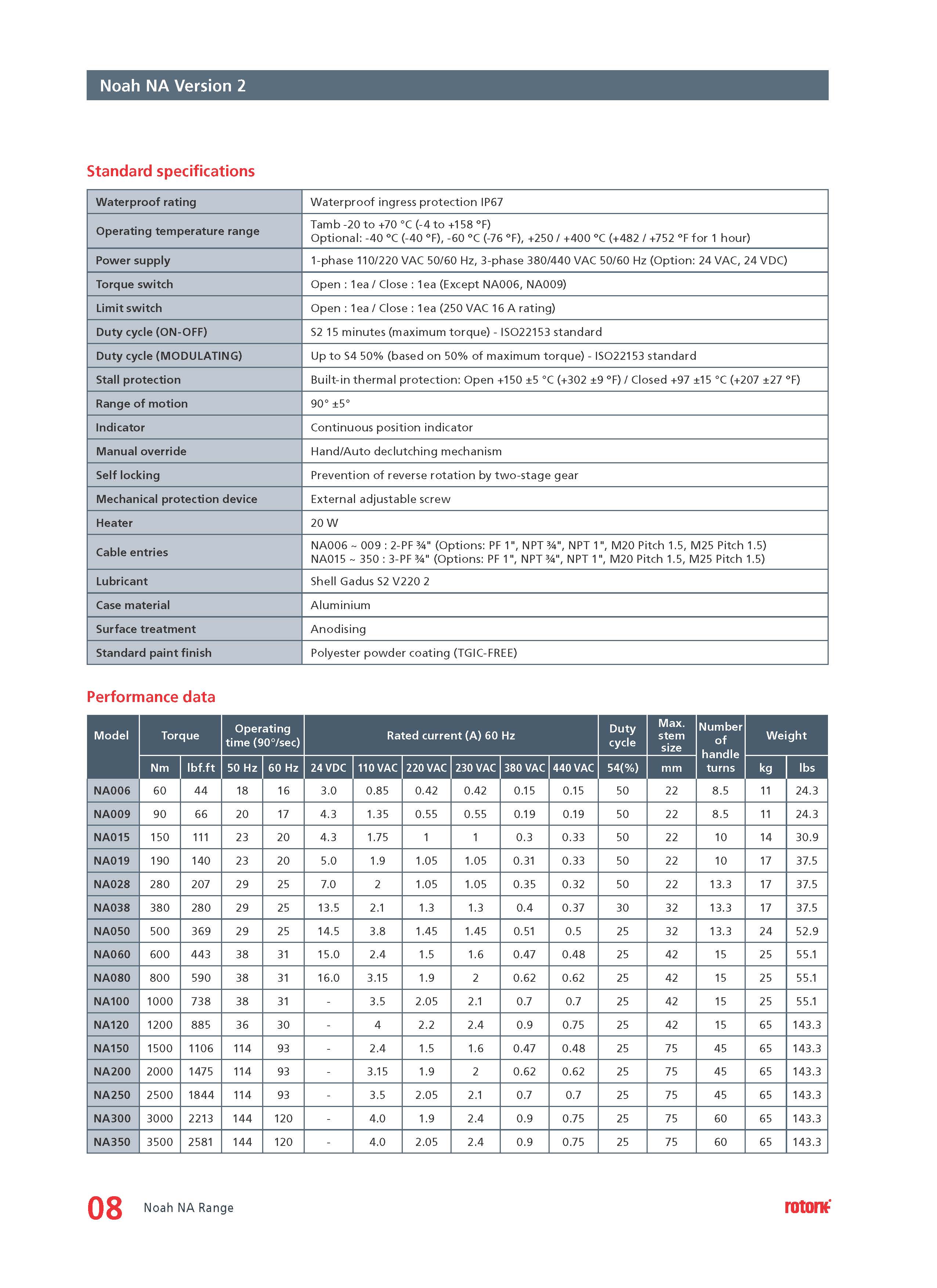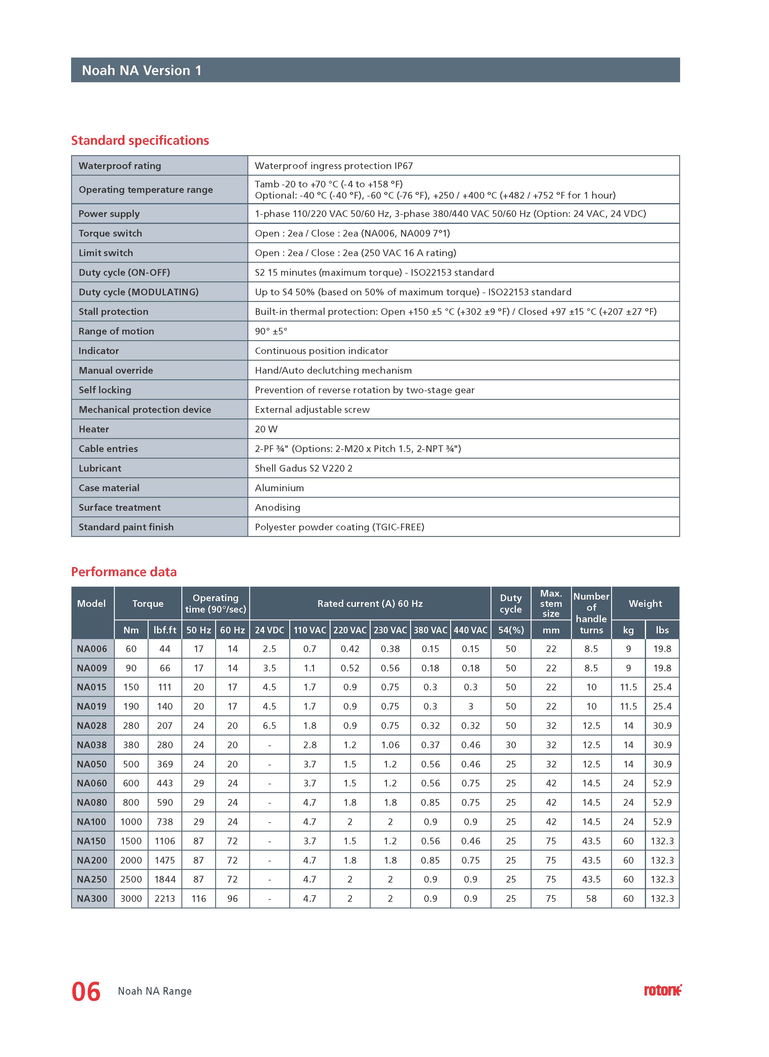 ROTORK Noah NA Series