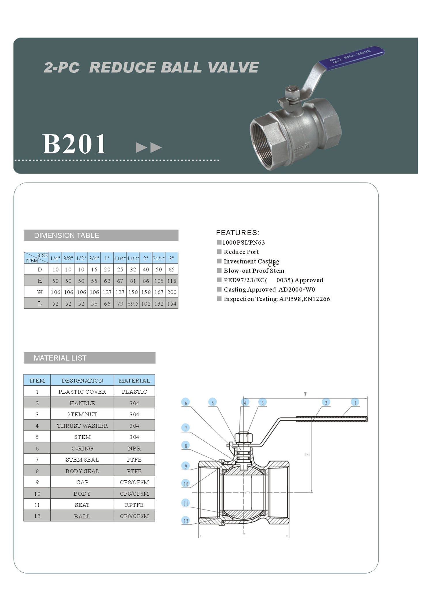B201 2PC Reduce Ball Valve_Lever
