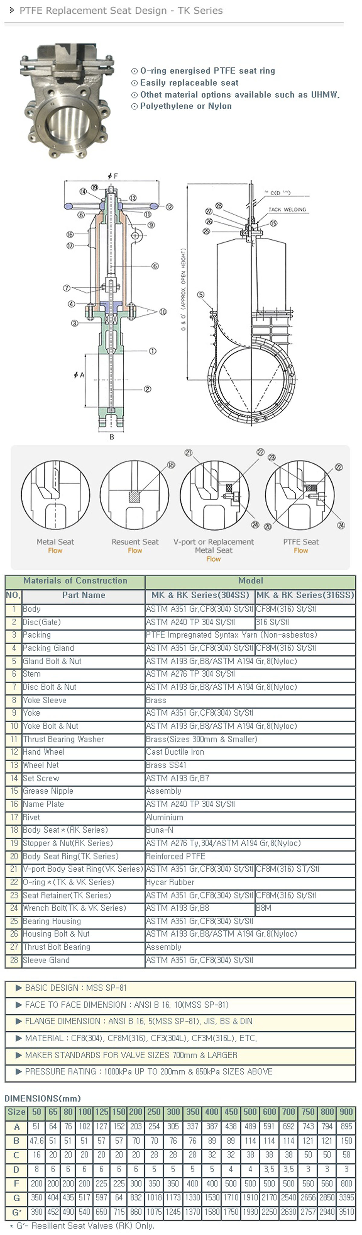 PTFE Seat Ring Knife Gate Valve