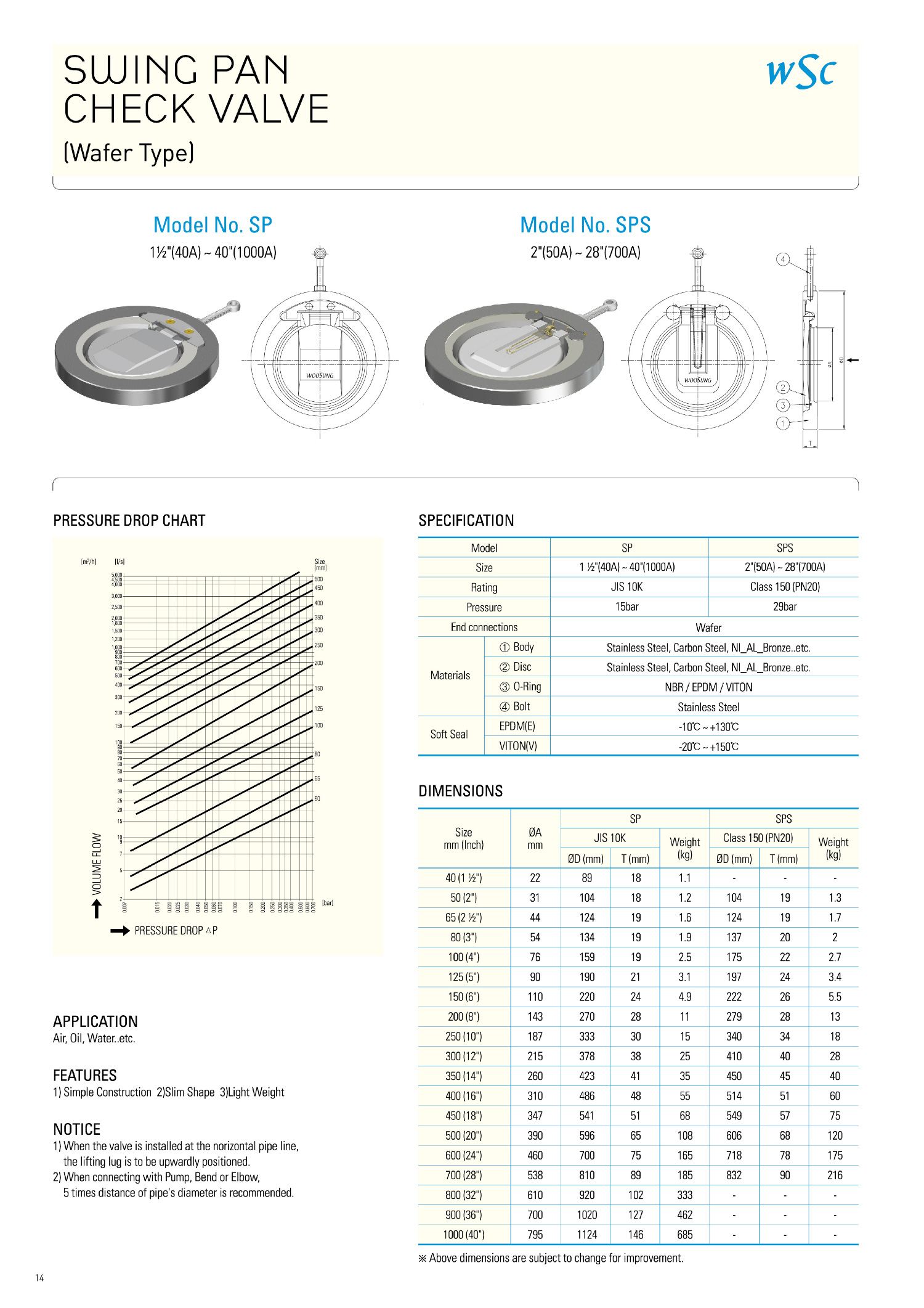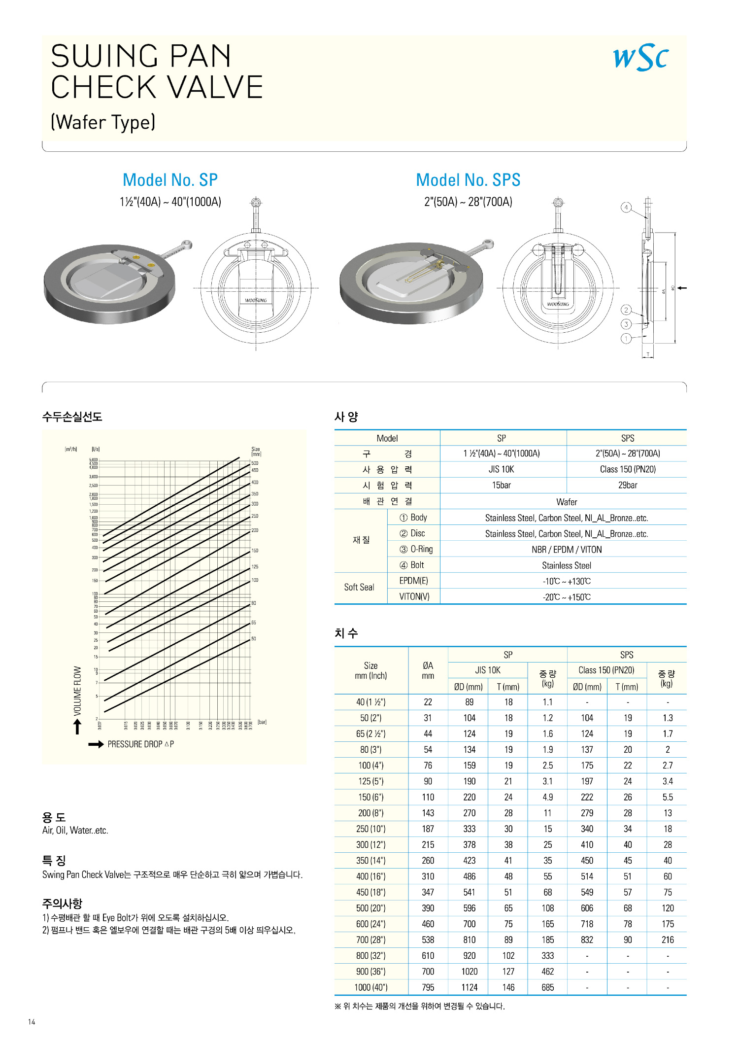 SP, SPS. SWING CHECK VALVE(WAFER½ºÀ®Ã¼Å©¹ëºê)