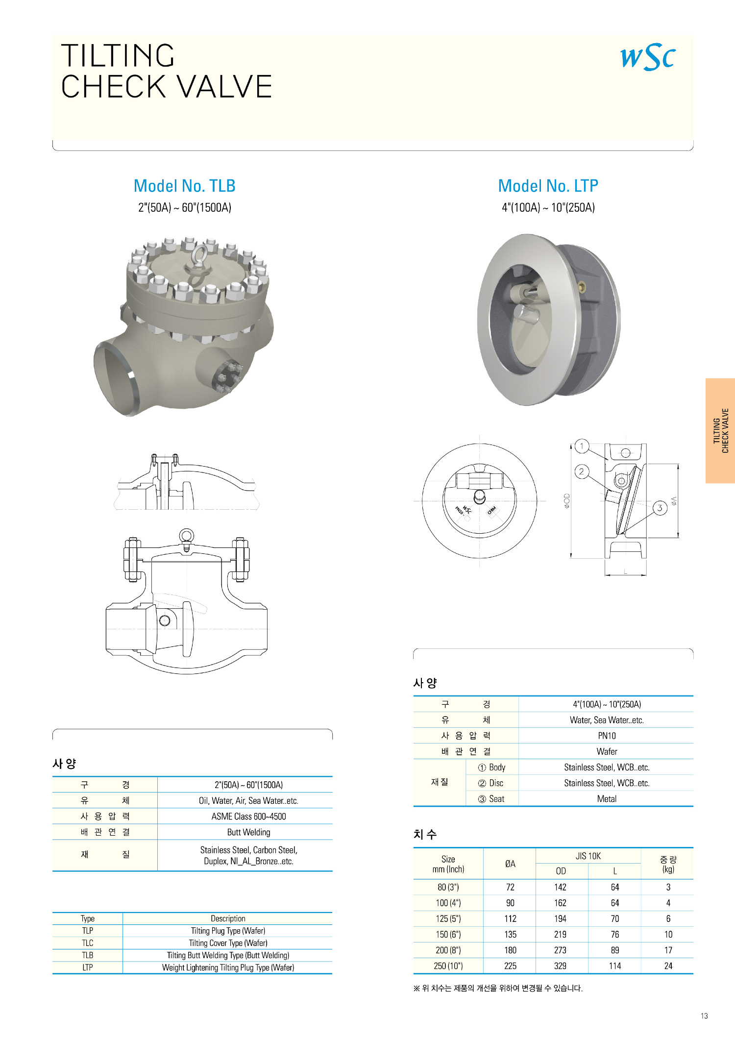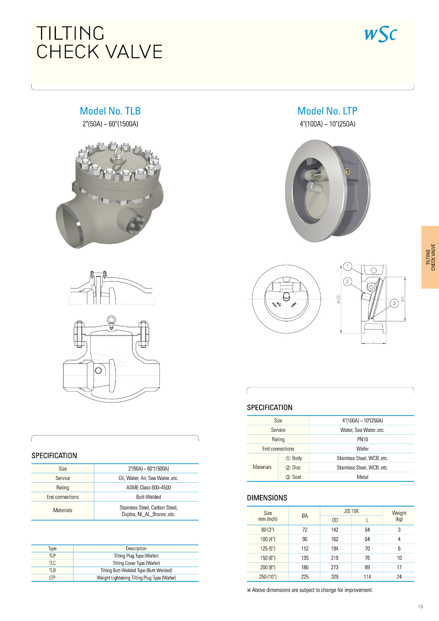 TLB, LTP. TILTING CHECK VALVE