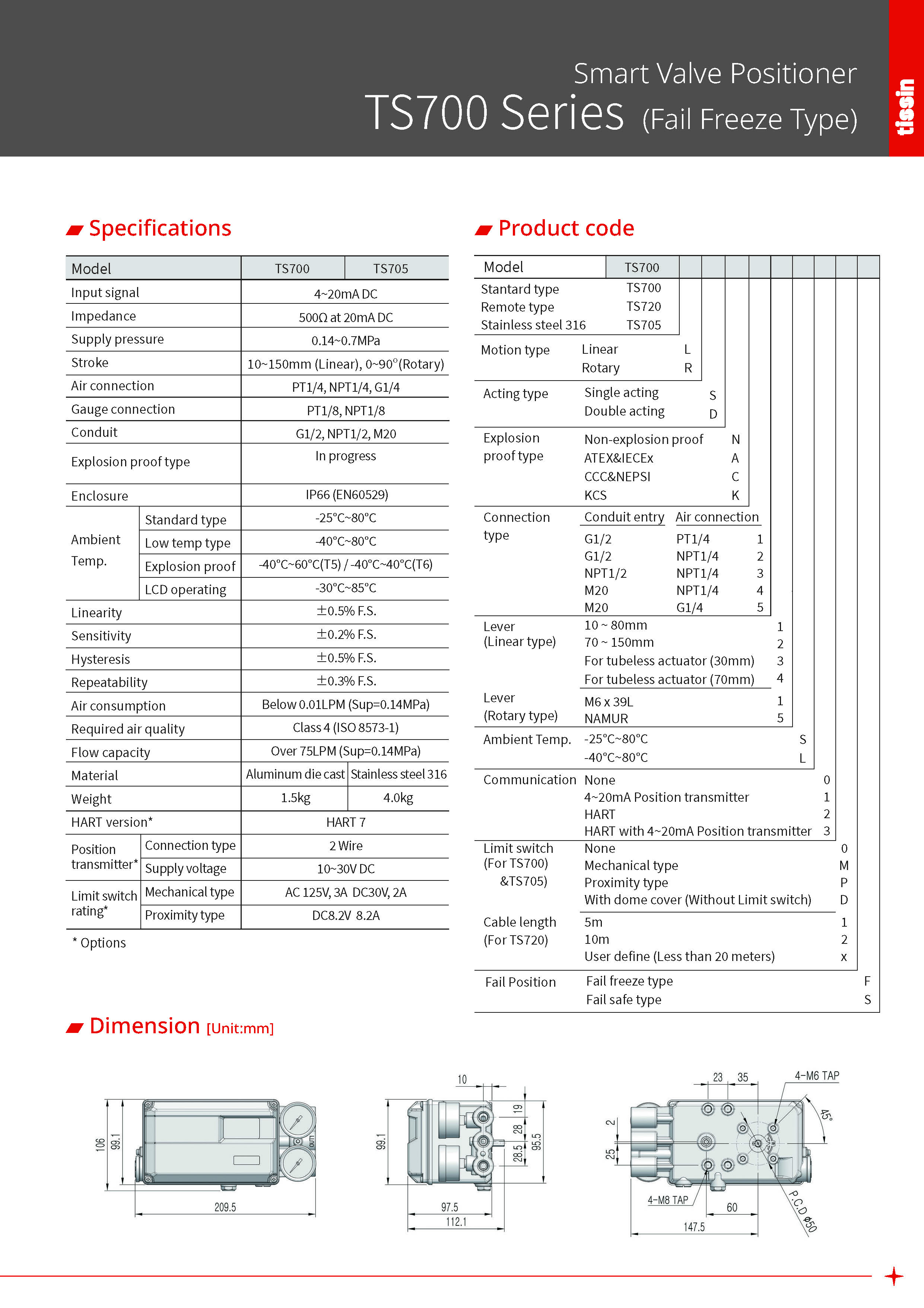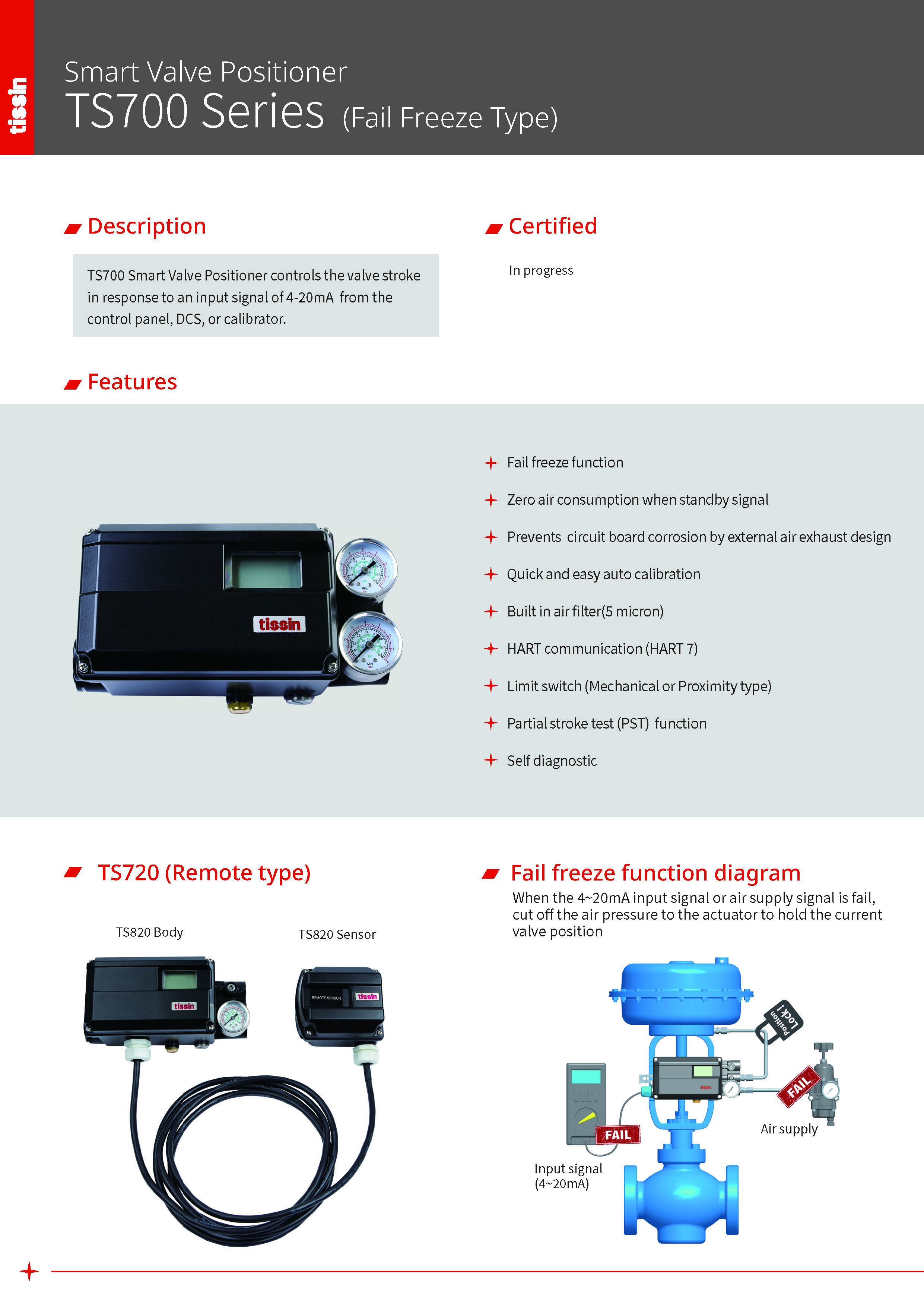 TS700 Smart Valve Positioner (Fail Freeze type)