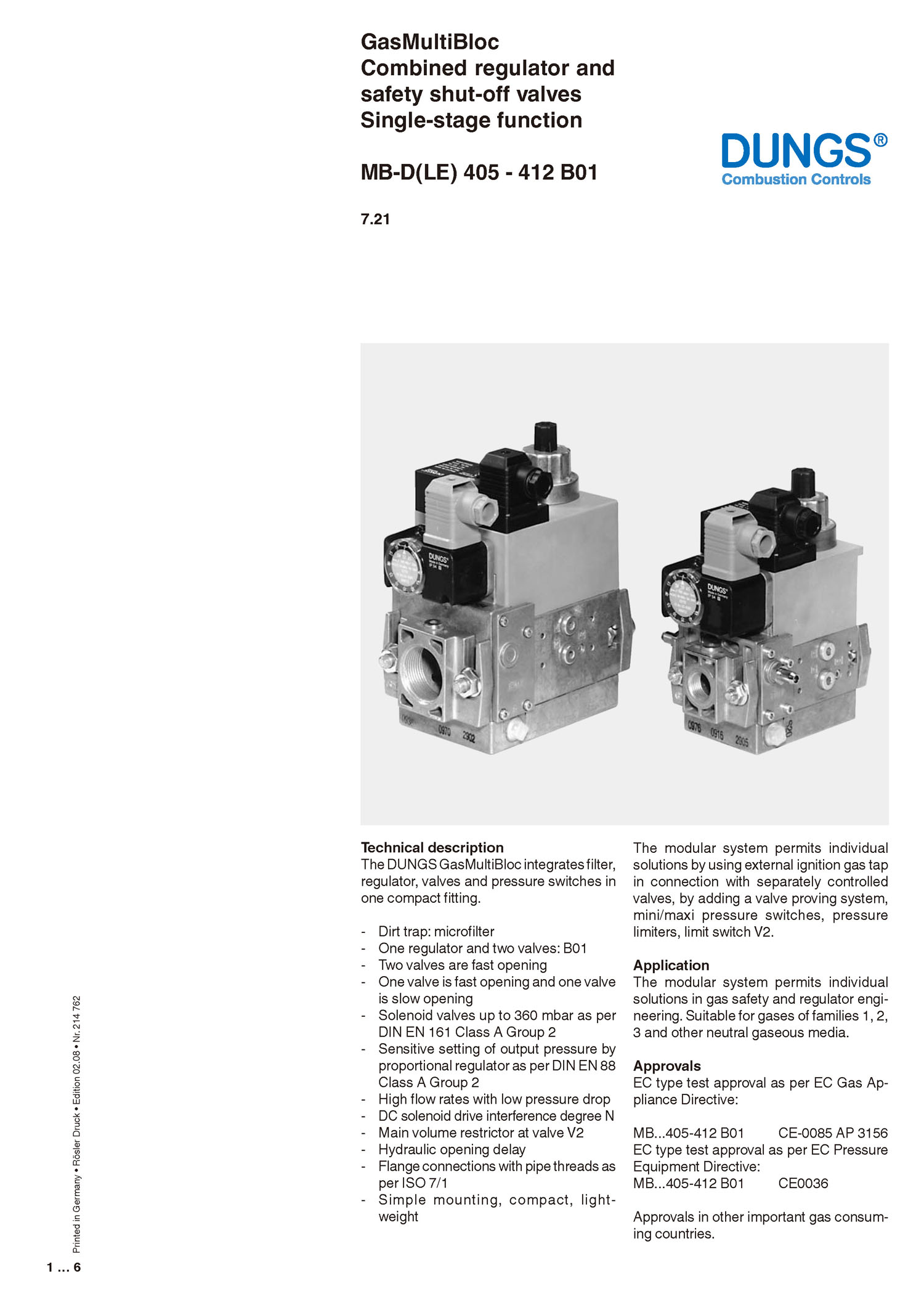 MB-D(LE)_DUNGS/GasMultiBloc Combined regulator and safety shut-off valves Single-stage function