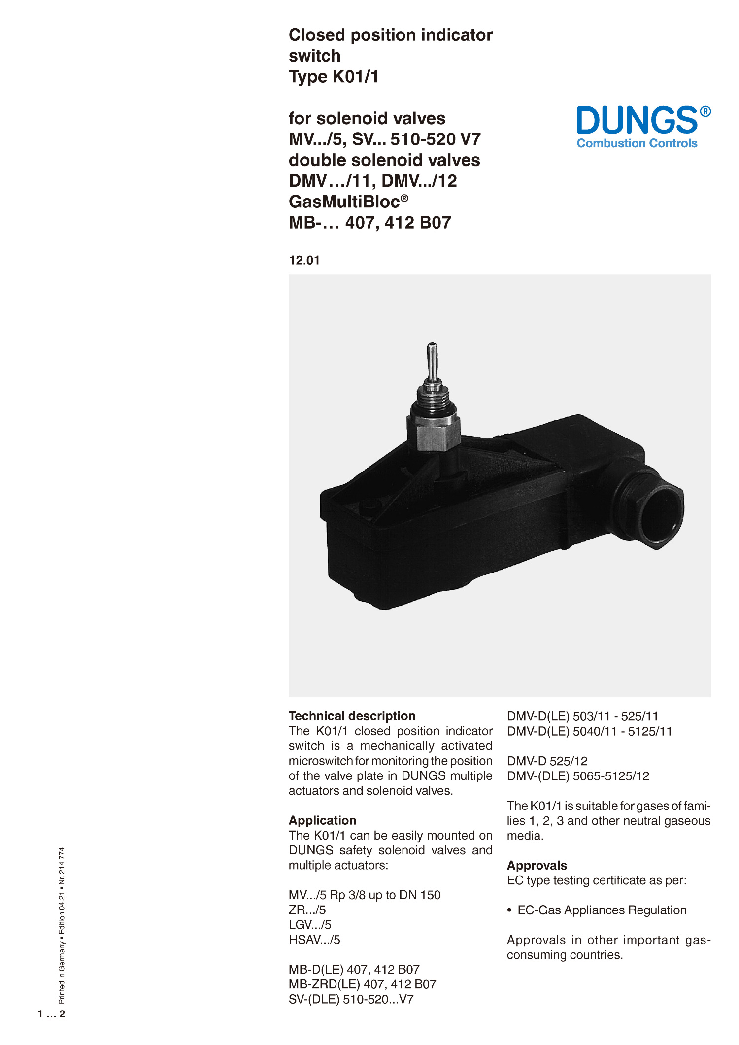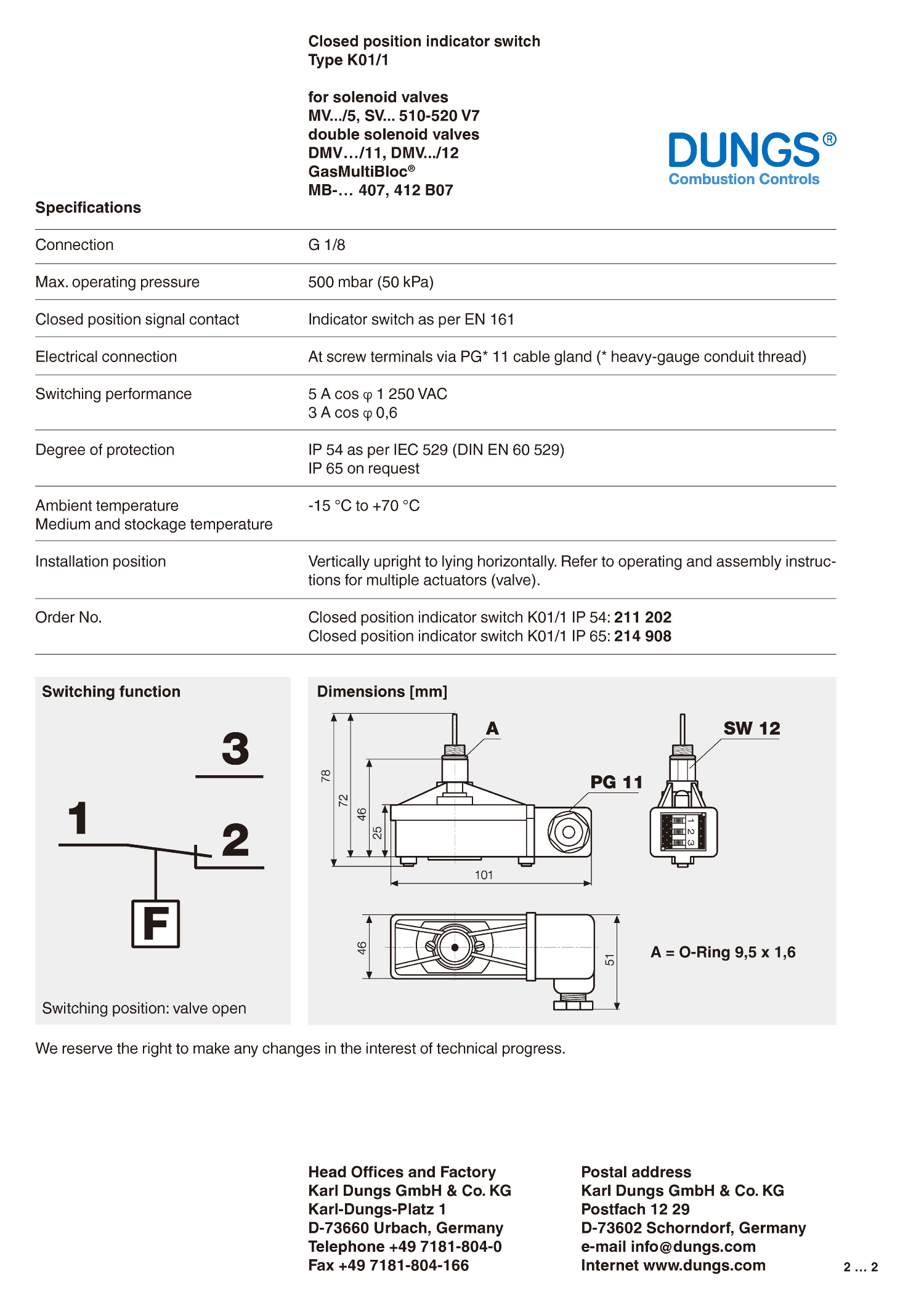 type K01 Dungs Close Position Indicator Switch