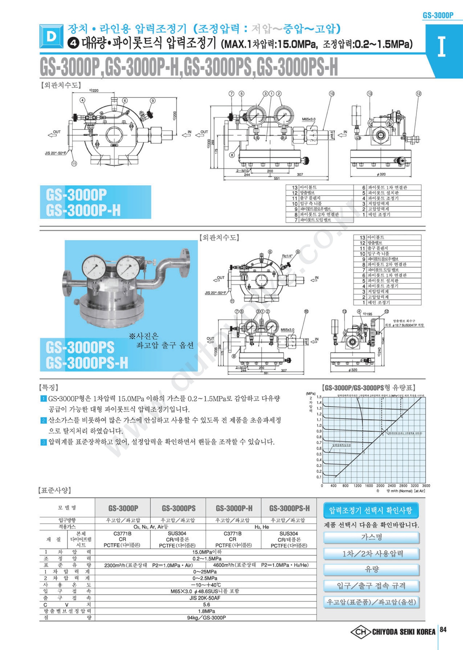 GP-3000P(-H),GP-3000PS(-H),ÀÔ±¸15MPa,Ãⱸ0.2~1.5MPa_CHIYODA