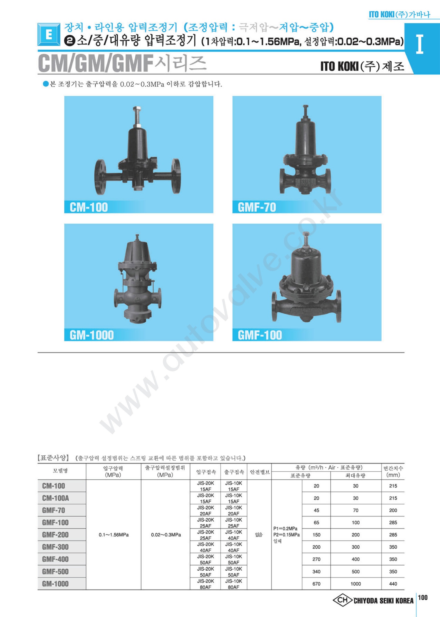 CM, GM, GMF½Ã¸®Áî, ÀÔ±¸¾Ð·Â:0.1~1.56MPa, Ãⱸ¾Ð·Â: 0.02~0.3MPa, ITO KOKI