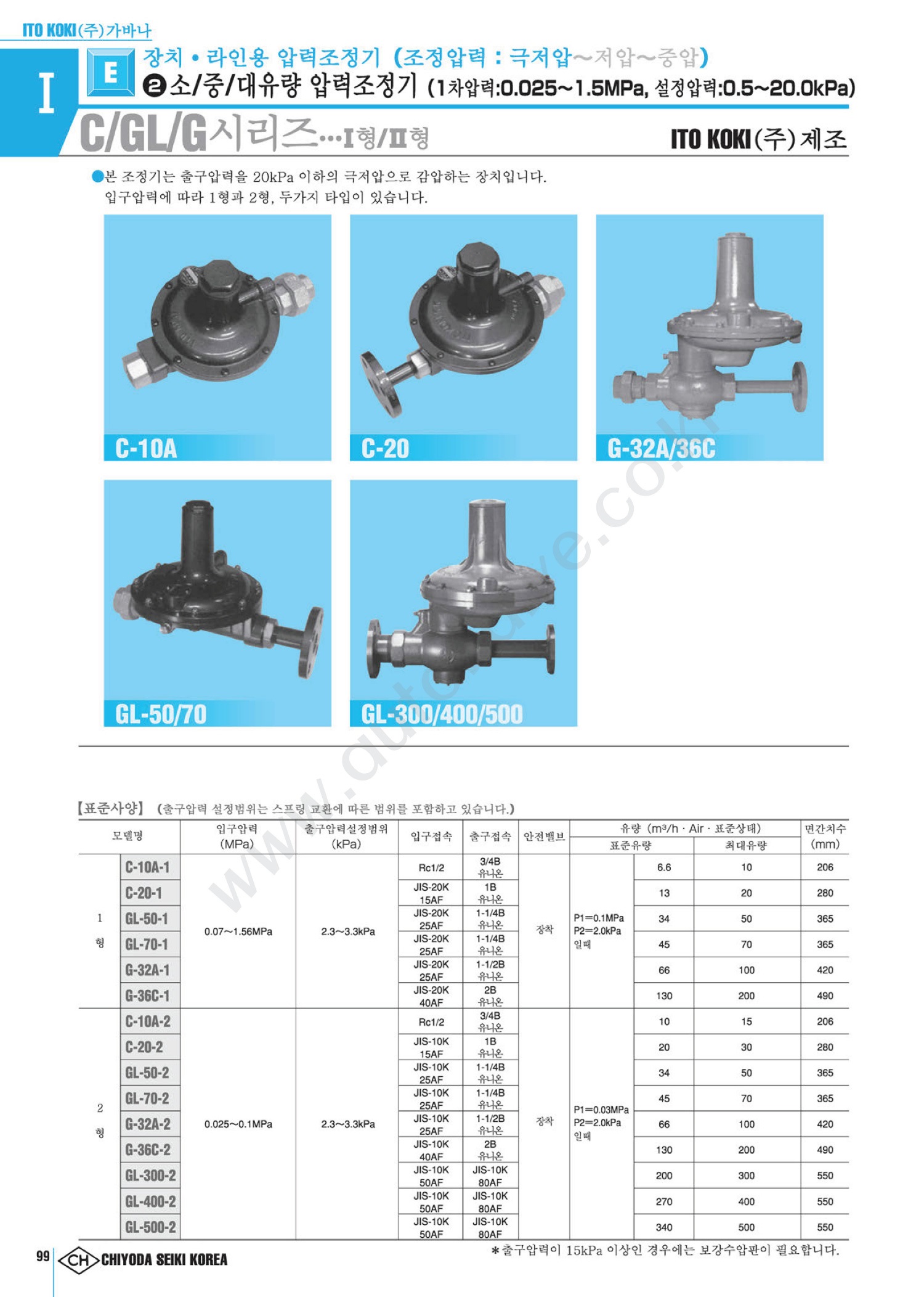 C, GL, G½Ã¸®Áî, ÀÔ±¸¾Ð·Â:0.025~1.5MPa, Ãⱸ¾Ð·Â: 0.5~20kPa, ITO KOKI
