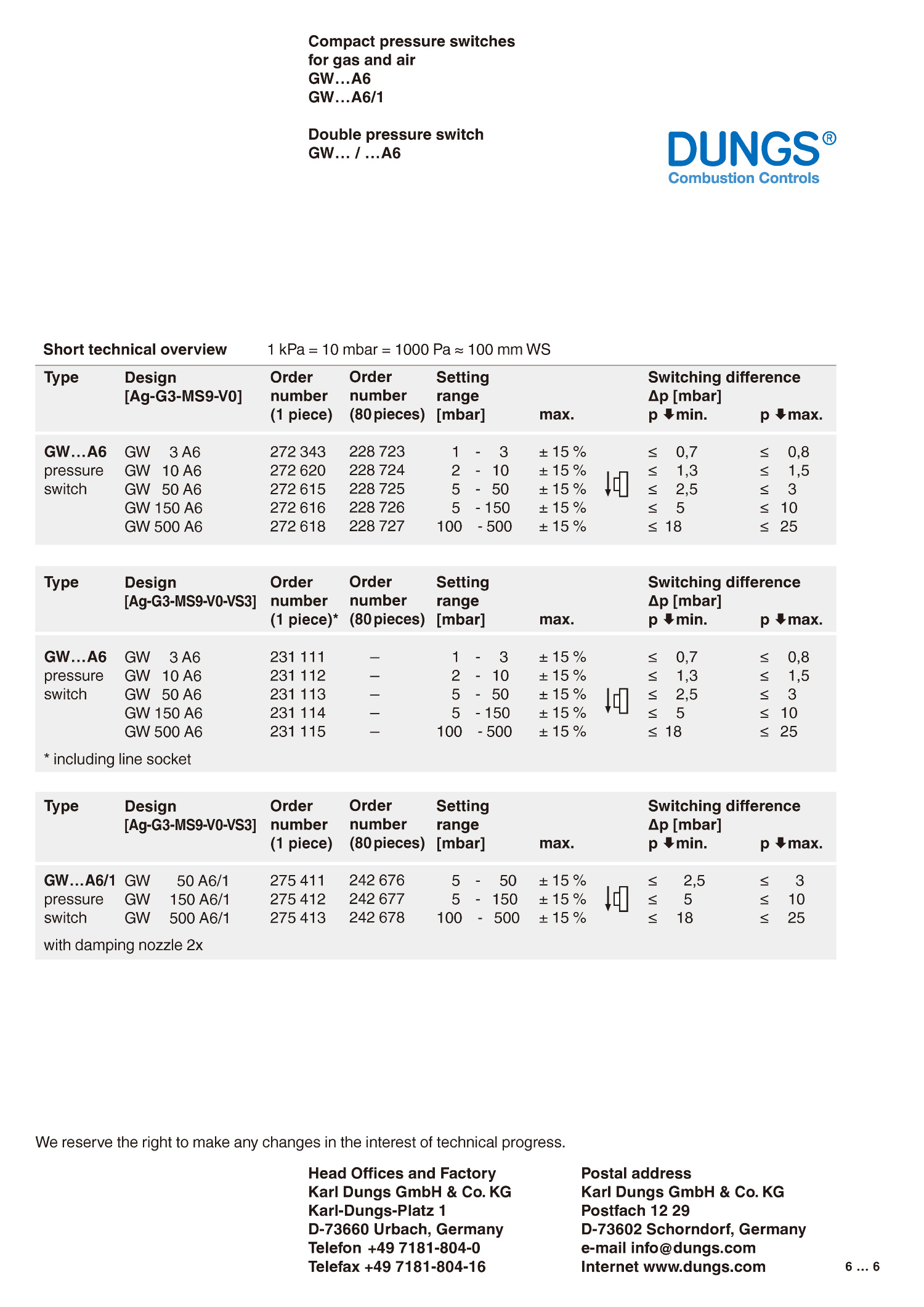 GW Series _ Compact Pressure Switches_DUNGS