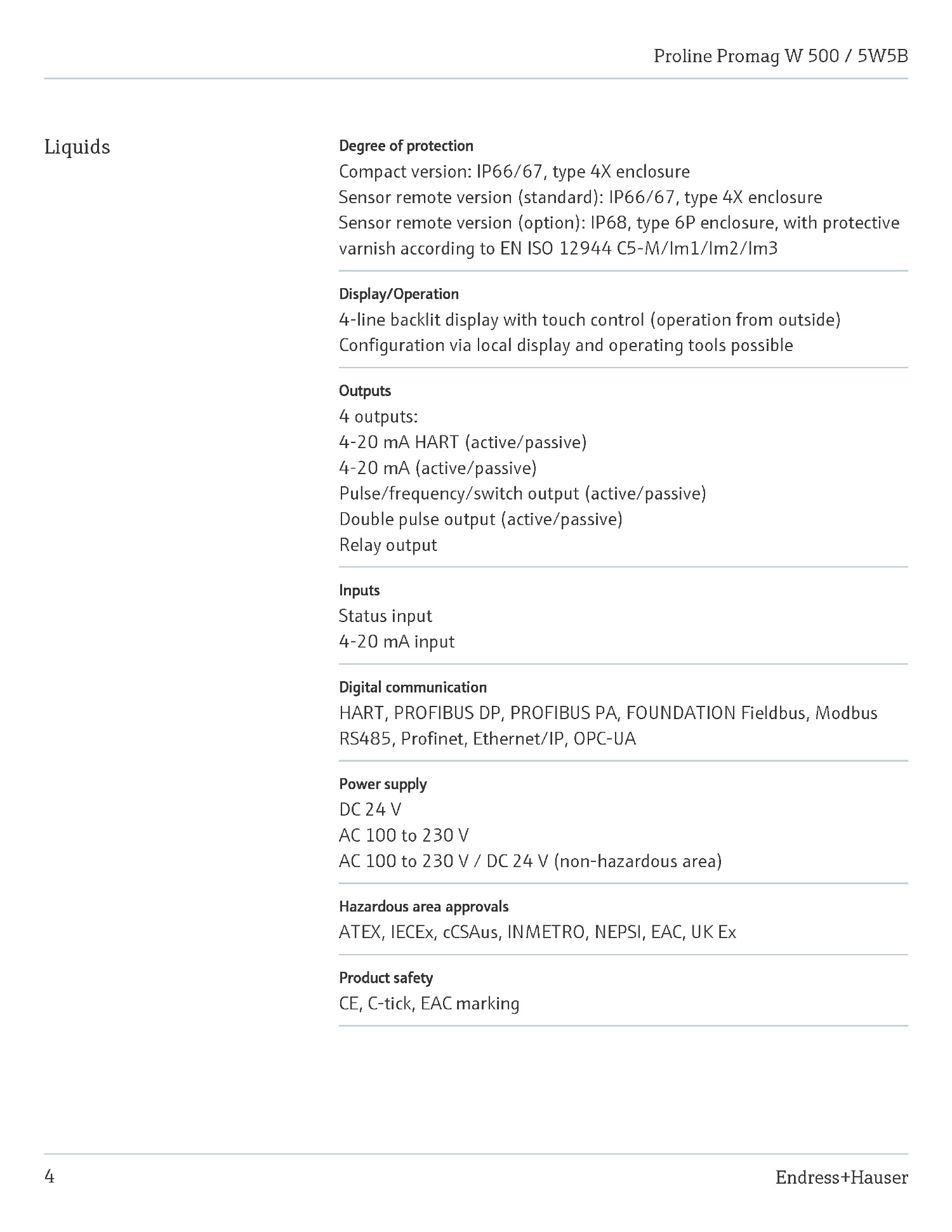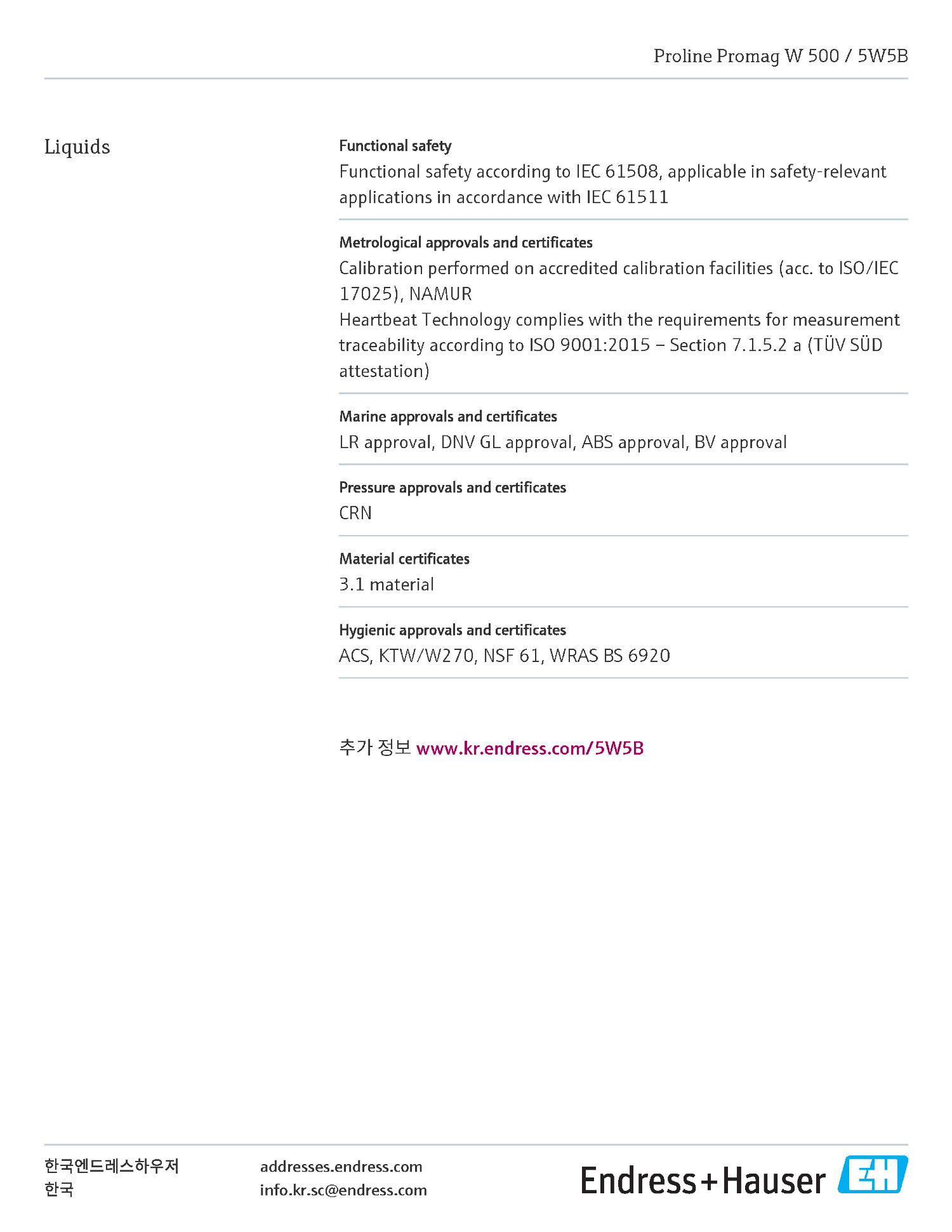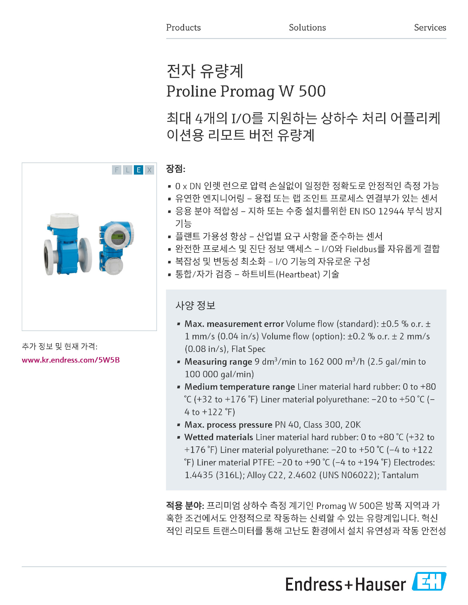 W500 ÀüÀÚ À¯·®°è(»óÇϼö ¸®¸ðÆ®¹öÀü) Endress-Hauser