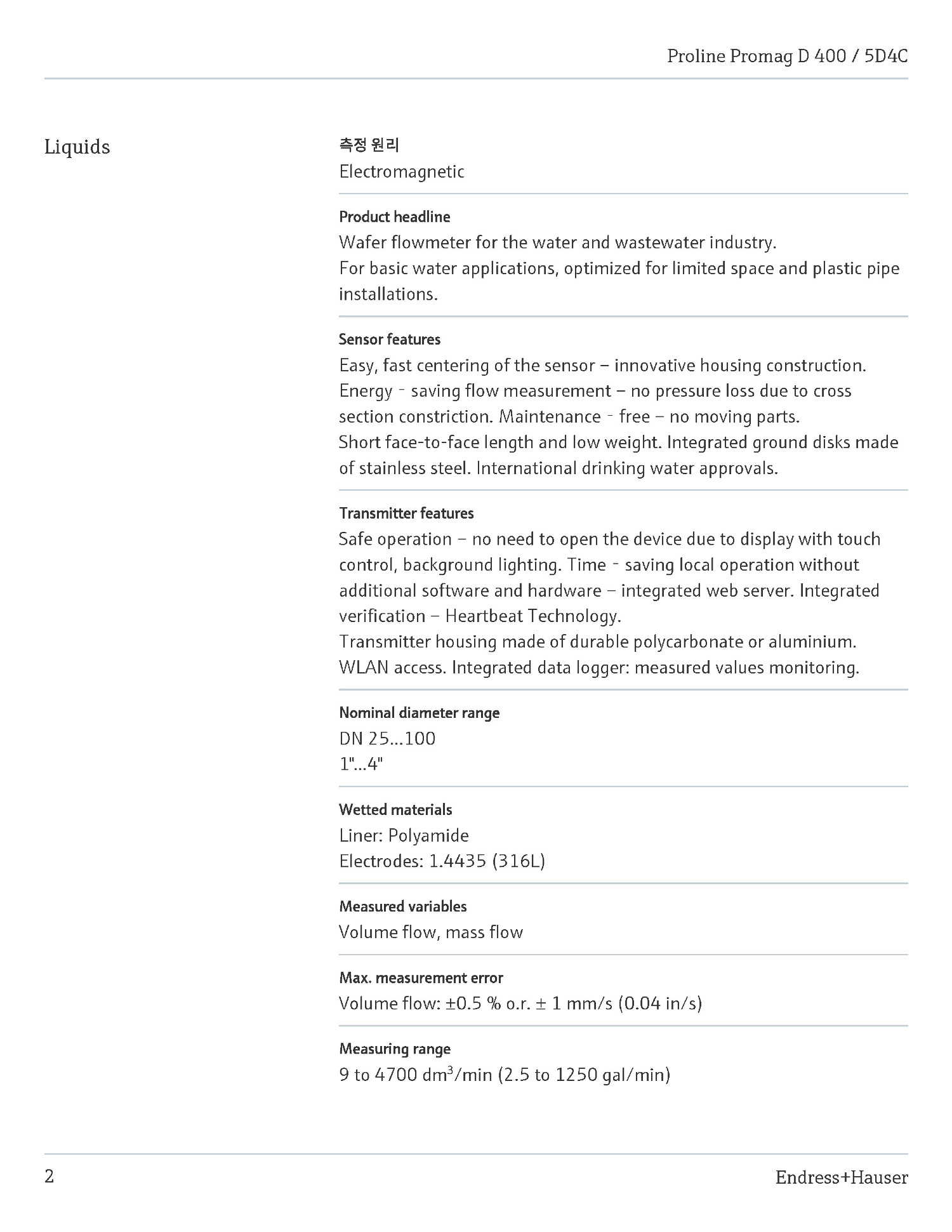 Endress-Hauser_Proline_Promag_D_400_5D4C_KO ÀüÀÚ±â À¯·®°è.pdf