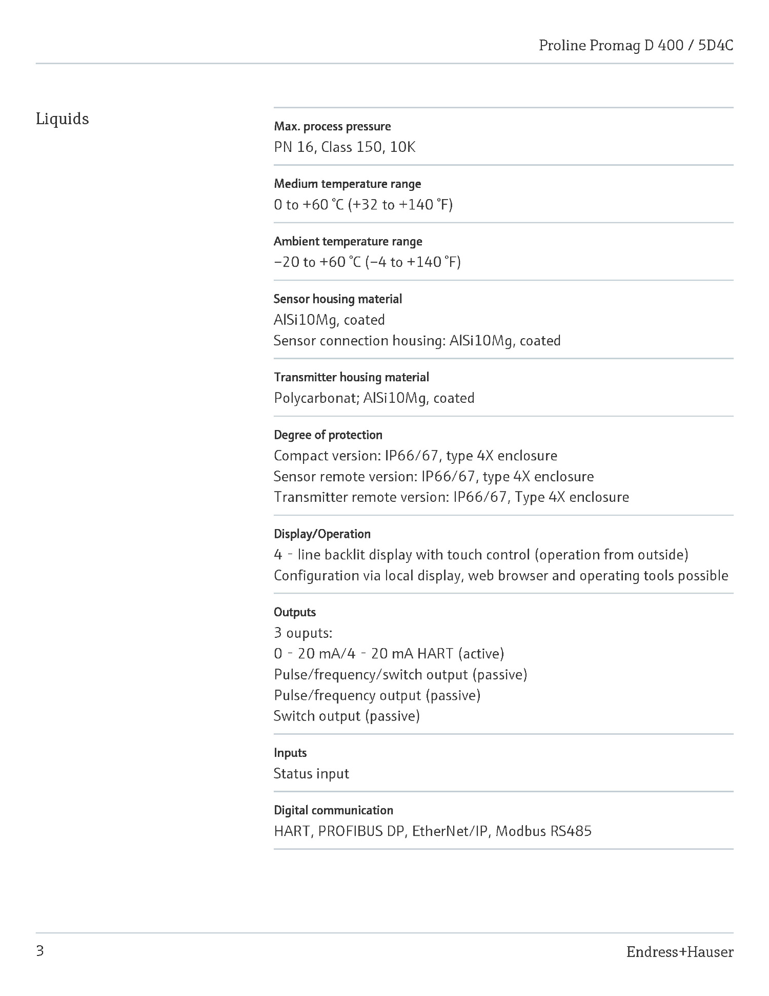 D400 ÀüÀÚ±â À¯·®°è Endress-Hauser