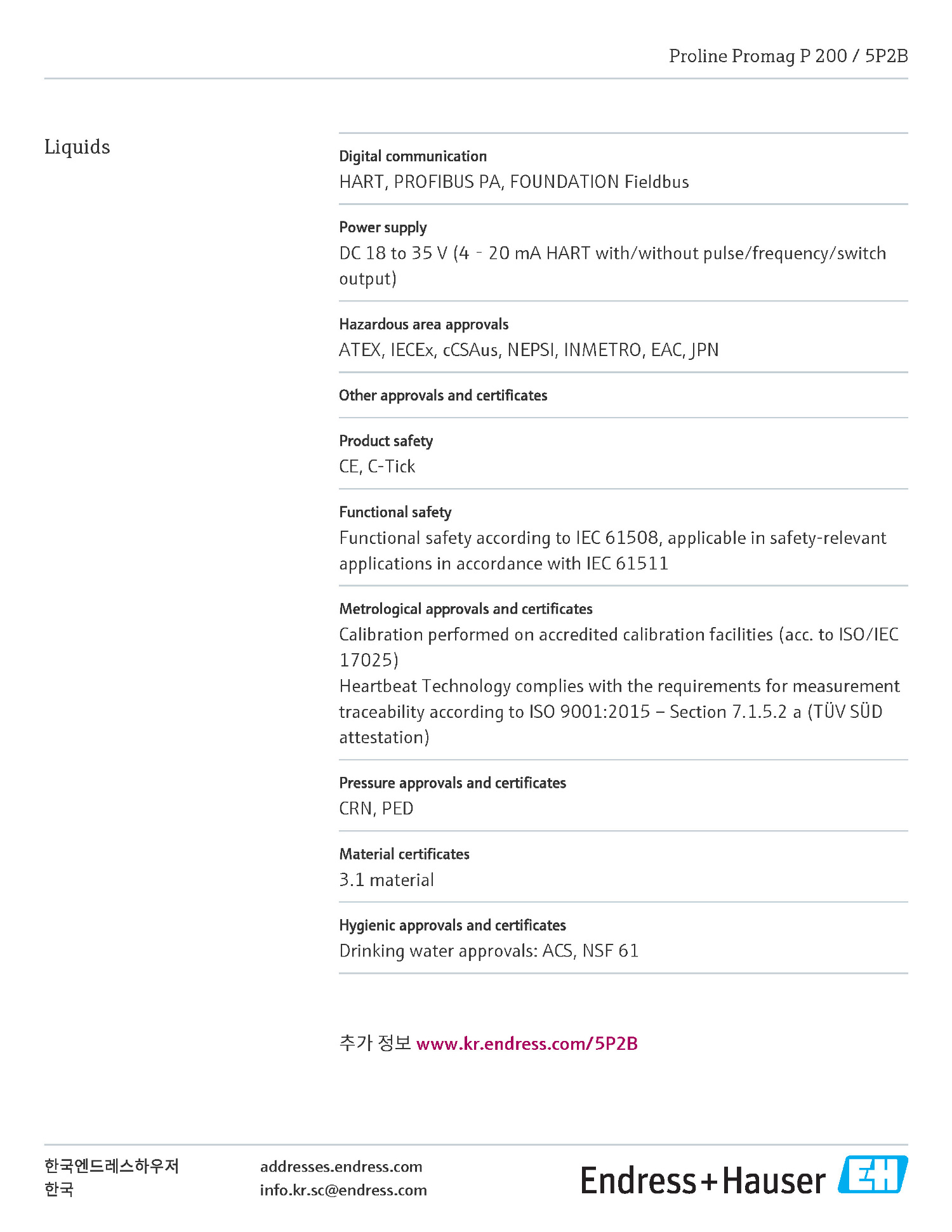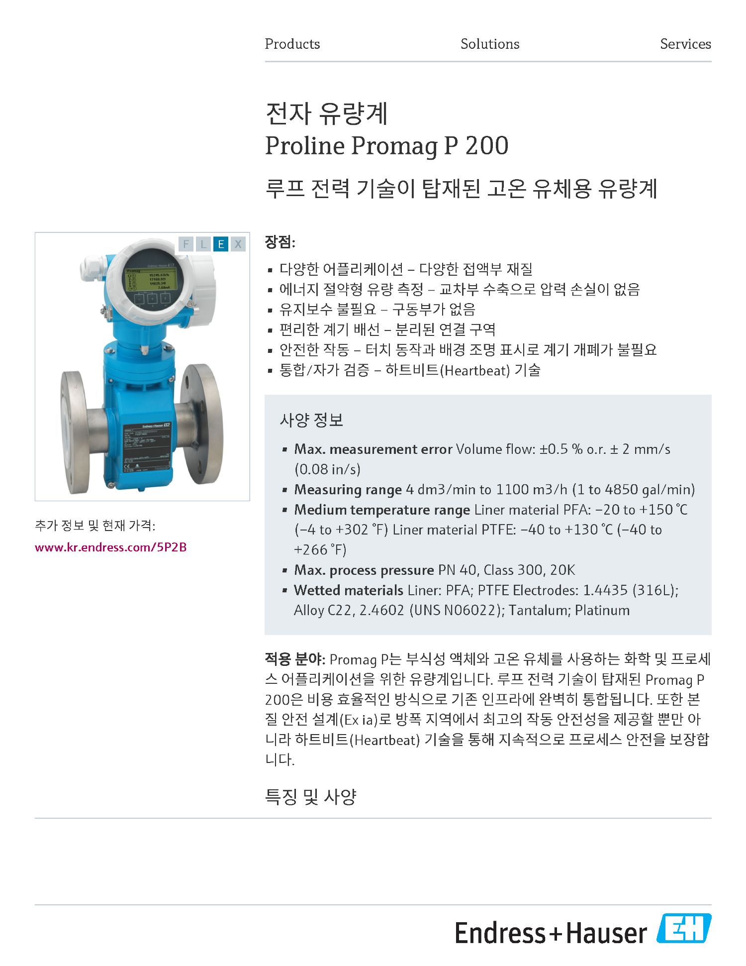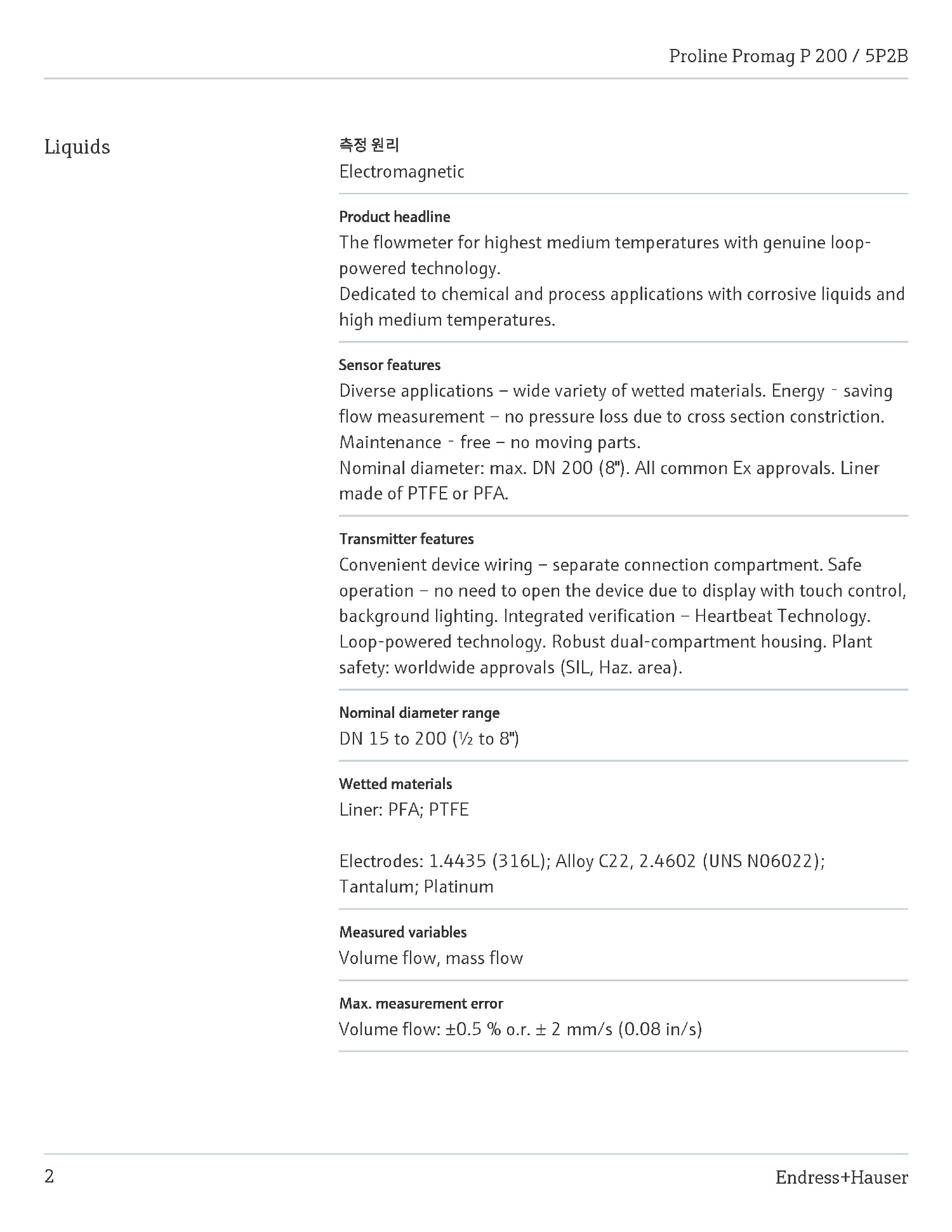 Endress-Hauser_Proline_Promag_P_200_5P2B_KO ÀüÀÚÀ¯·®°è(·çÇÁÀü·Â °í¿ÂÀ¯Ã¼¿ë).pdf